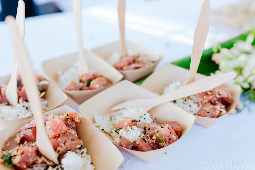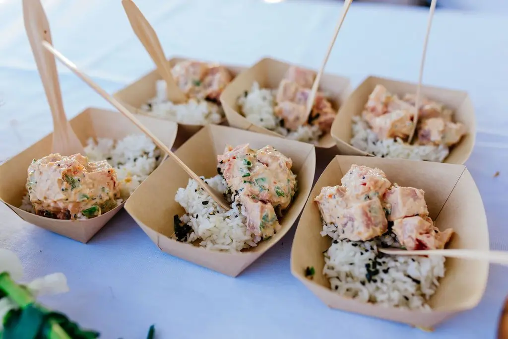 Food For The Soul Catering & Events in Wailuku brings passion and flavor to Hawaii weddings with upscale dishes, stellar service, and striking presentations. Owned by culinary duo Tina and Chef Rob Digman, this team crafts menus that perfectly match your vision, from plated elegance to creative stations and buffets. Paired with expert bar service, desserts, and a focus on hospitality, they create unforgettable wedding dining experiences that truly feed the soul.