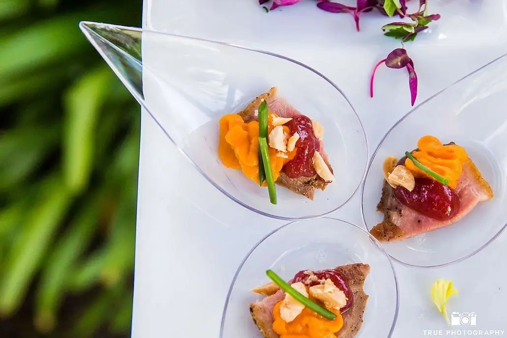 With over 30 years of wedding catering expertise, Culinary Concepts in San Diego creates dining experiences that are as stunning to look at as they are to taste. Their international menus span Indian, Italian, Mexican, Middle Eastern, Thai, and more, all crafted with local, sustainable ingredients. From elegant plated dinners to lavish buffets, they tailor every detail to your vision. Their full-service offering includes linens, glassware, barware, setup, and cleanup — letting you savor your special day without stress.