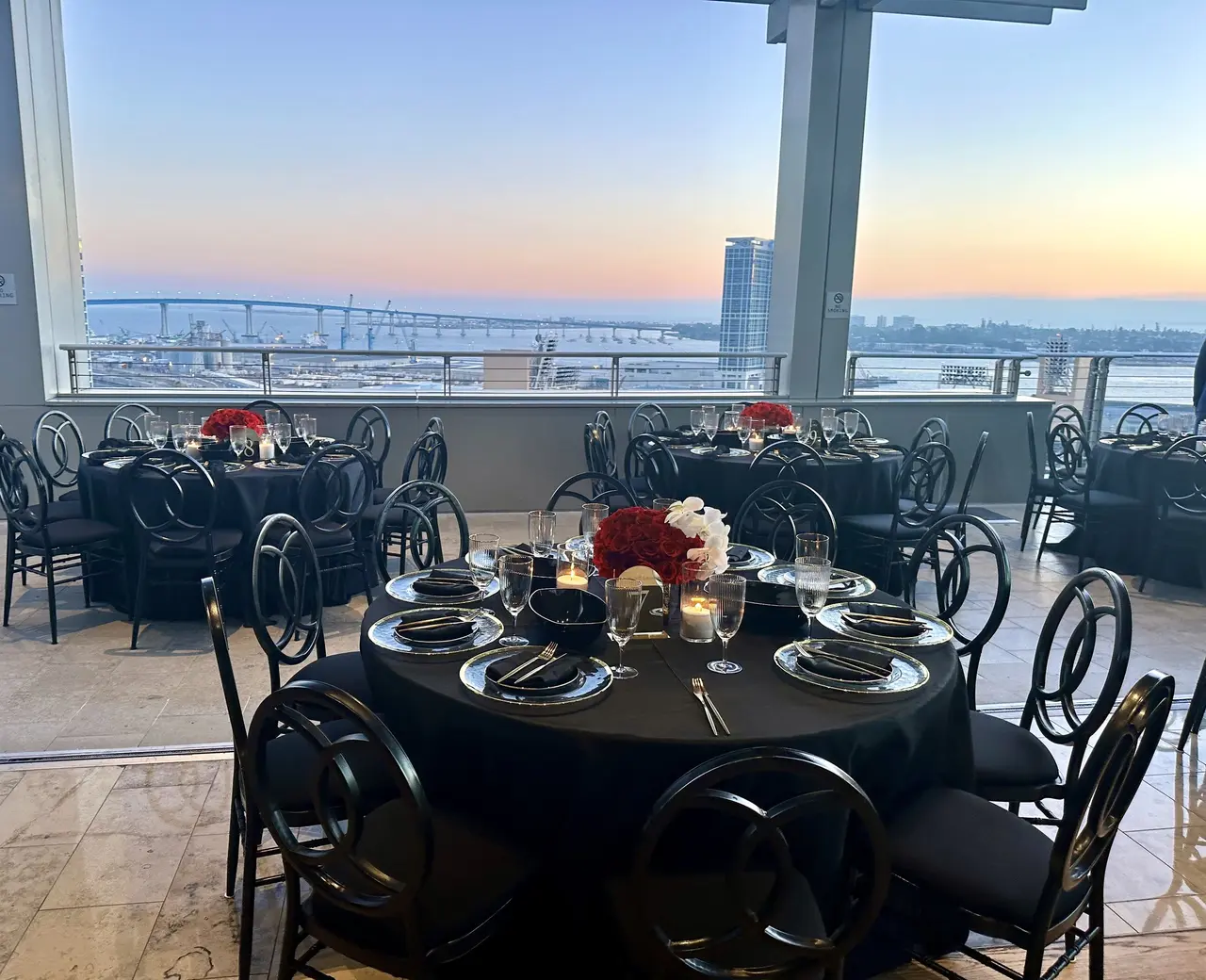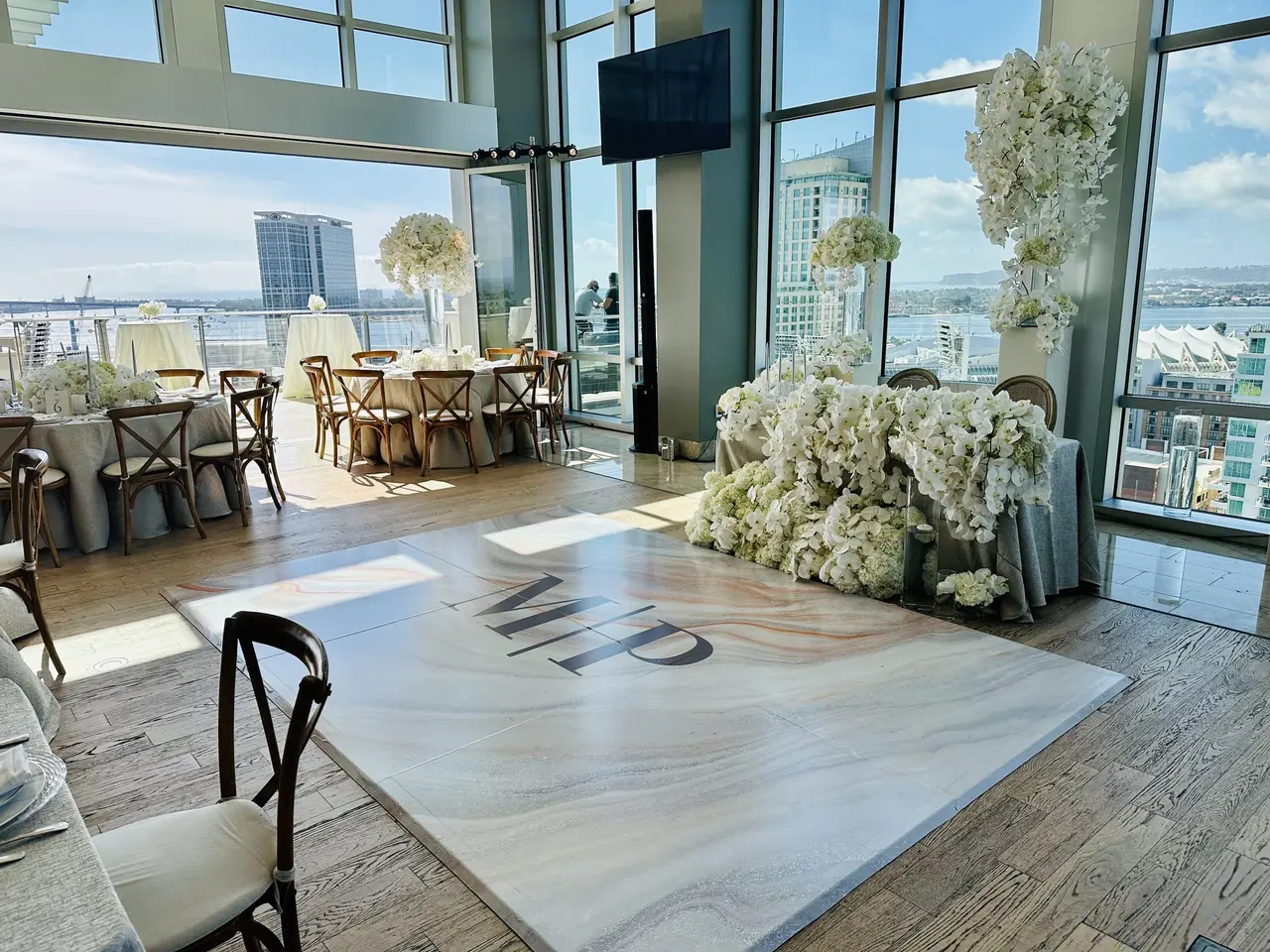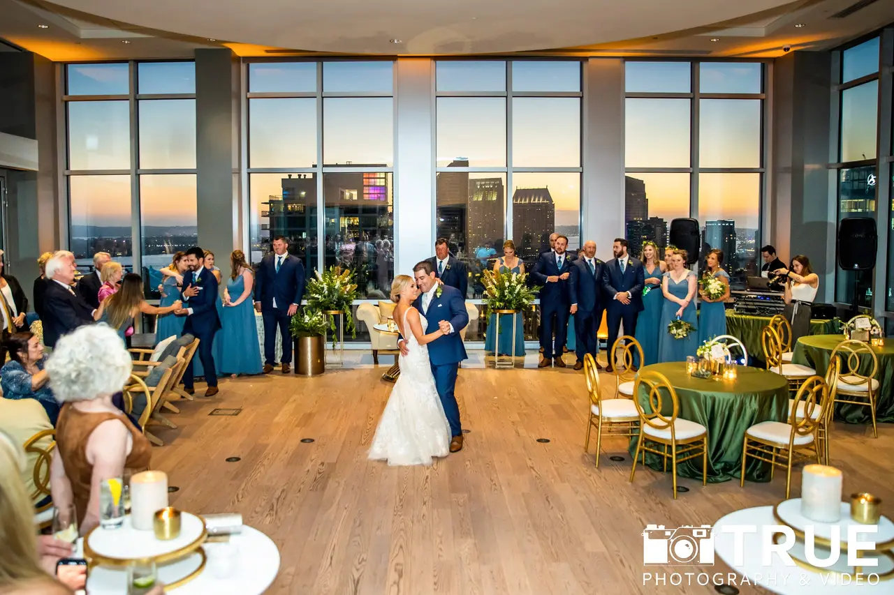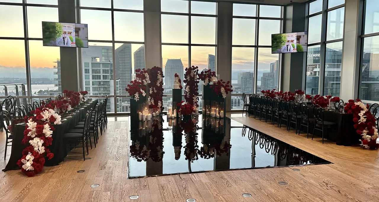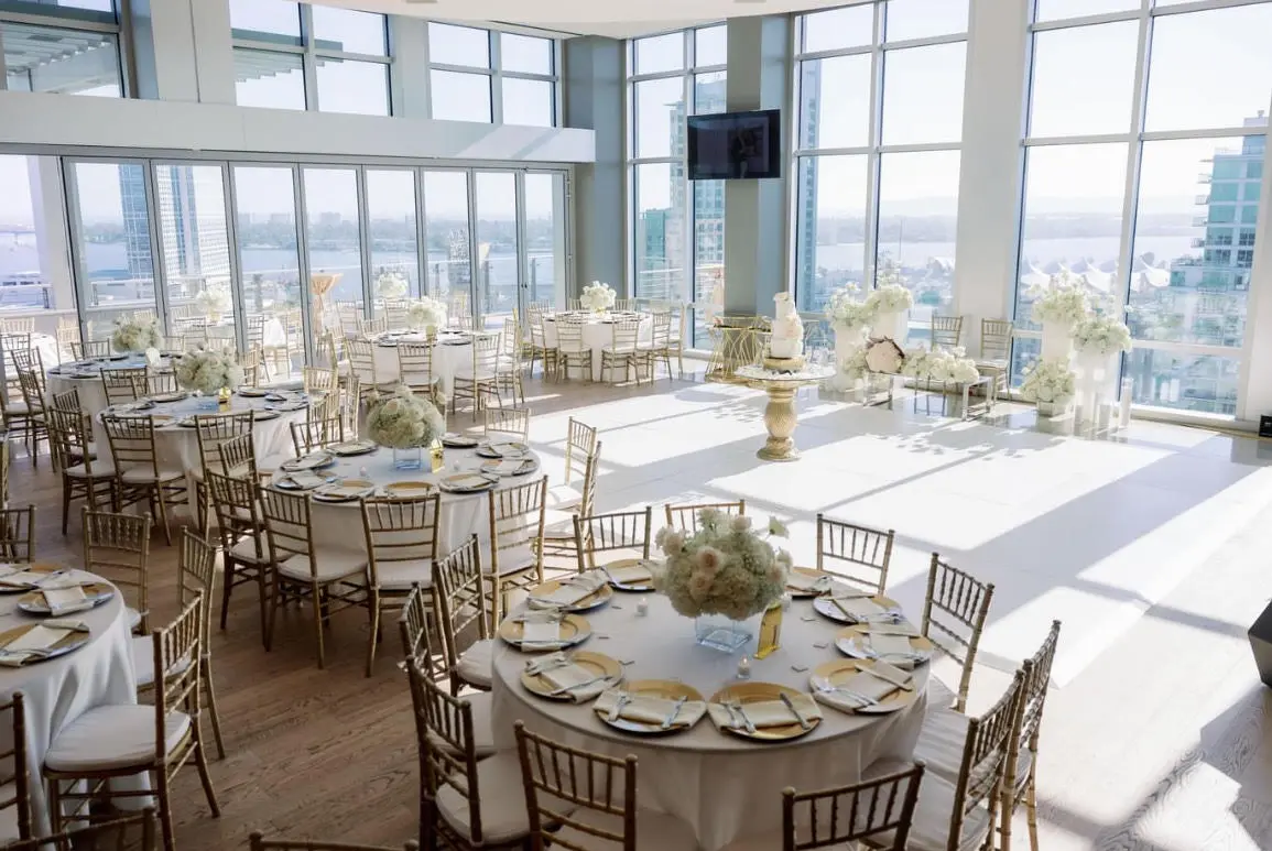 Soaring high above downtown San Diego, the Ultimate Skybox at Diamond View Tower offers unmatched panoramic views of the city skyline and Petco Park. Ideal for both ceremonies and receptions, the venue’s wrap-around terrace allows guests to flow between chic indoor spaces and breathtaking outdoor scenery. Sunlight floods the room by day, while sunsets transform the space into a glowing backdrop for your vows. The hardwood floors and open layout provide flexibility for custom décor, dining, and dancing under the stars—perfect for couples seeking a stylish urban celebration.