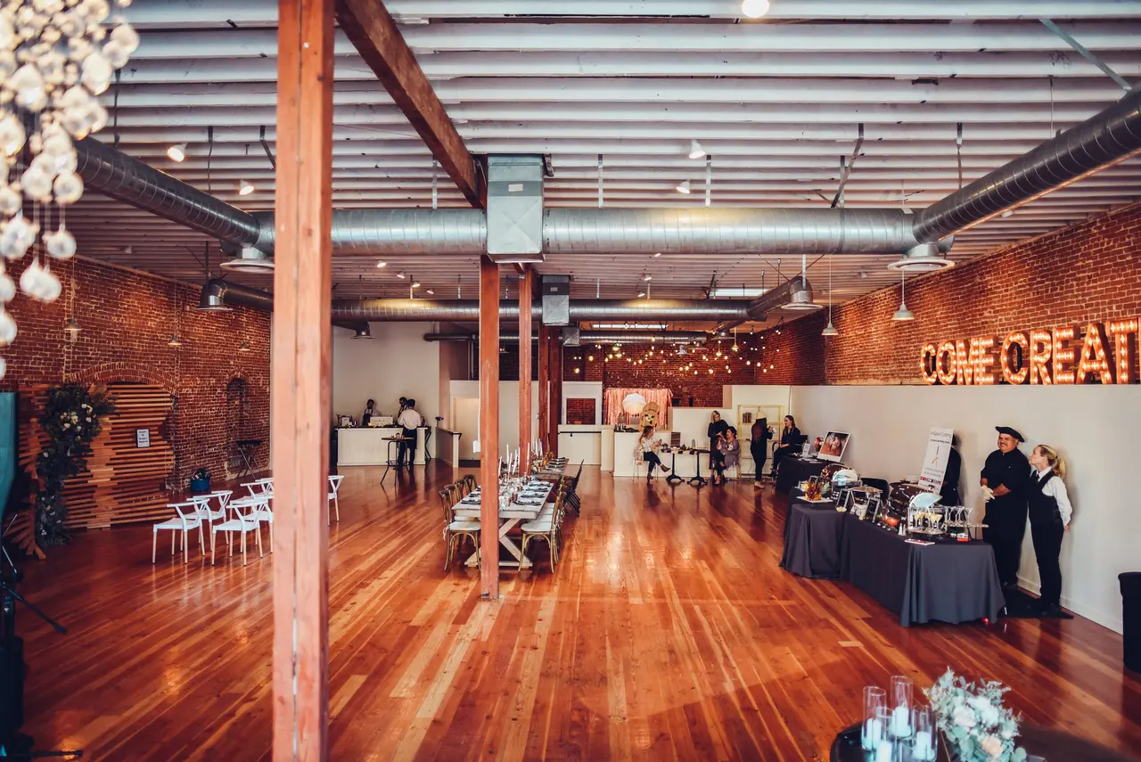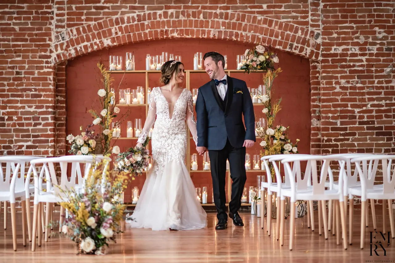 Blending historic charm with modern elegance, The Sinclair on G Street in San Diego’s Gaslamp Quarter is a unique setting for weddings and special events. Featuring exposed brick walls, vaulted ceilings, polished hardwood floors, and sweeping staircases, the venue offers two floors of flexible space totaling 5,700 square feet. Large windows flood the rooms with natural light, while sparkling chandeliers and custom lighting create an intimate glow for evening celebrations. Perfect for ceremonies, receptions, and other wedding-related events, The Sinclair also offers get-ready rooms, Wi-Fi, event rentals, and a welcoming staff to ensure every detail is beautifully executed.