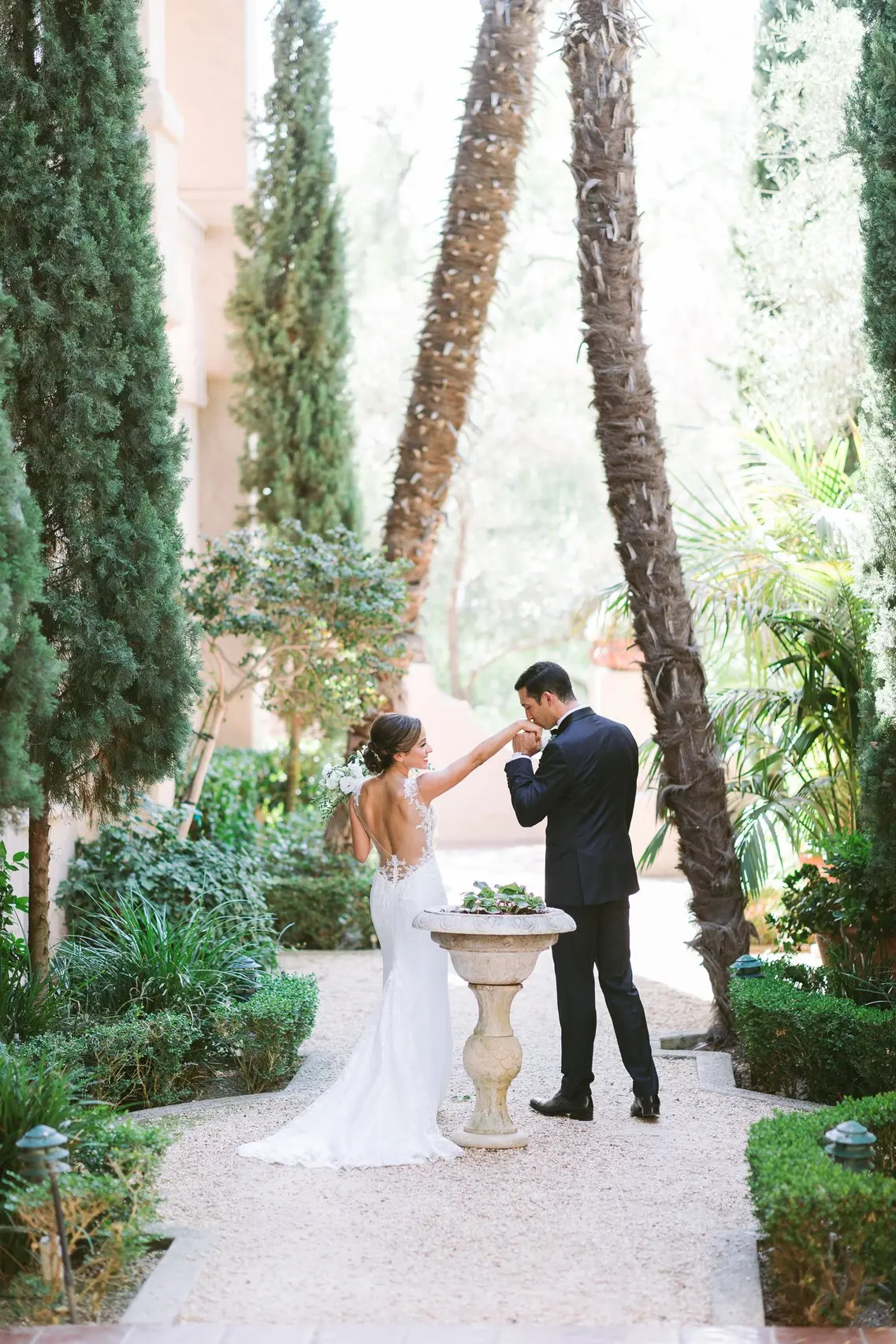 - Spanish-style architecture with fountains
