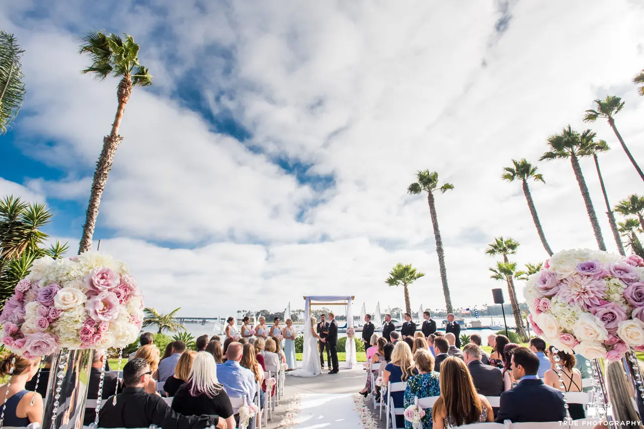 Paradise Point Resort & Spa transforms San Diego’s Mission Bay into a breathtaking wedding destination. Spanning 80,000 square feet of event space, the resort offers six unique settings, from sandy beaches and bayfront lawns to tropical gardens and elegant ballrooms. Couples can exchange vows on Island Point Lawn or Pine Hill before celebrating at Sunset Terrace, Paradise Terrace, or one of the scenic indoor spaces with floor-to-ceiling windows. On-site spa services, including hair, makeup, and massages, add an extra layer of luxury, ensuring couples and guests enjoy a wedding experience as relaxing as it is unforgettable.